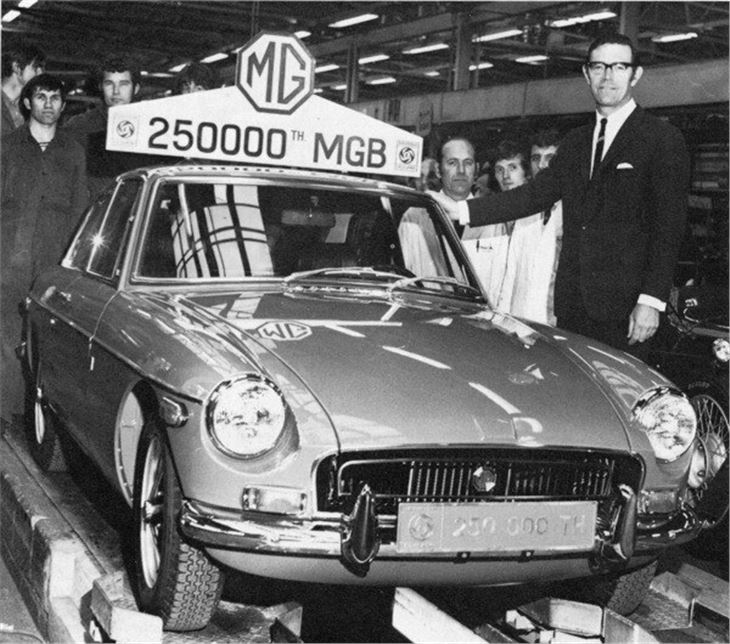 The 250,000th MGB is produced at Abingdon in the prescence of Austin Morris boss the George Turnbull. The car, a blaze left hand drive MGB GT is given away in a sweepstake in the USA in September 1971.