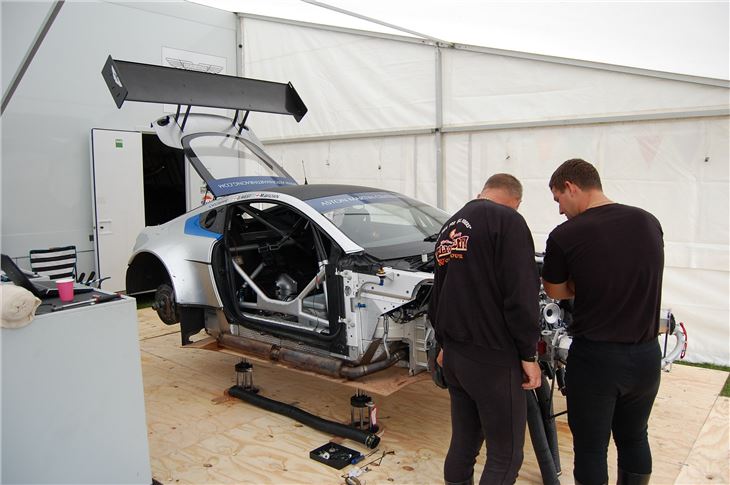 The biggest draw on the hill was the Brooklands Museum’s recording breaking 1933 John Cobb commissioned Napier-Railton (below). The car, which has to be push started, announced its arrival at the start-line with a sharp crack as its 24 litre Napier aero engine roared to life for seven nail-biting minutes while the engine came up to operating temperature before launching itself up the hill consuming five gallons of fuel per mile.