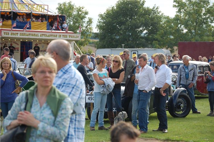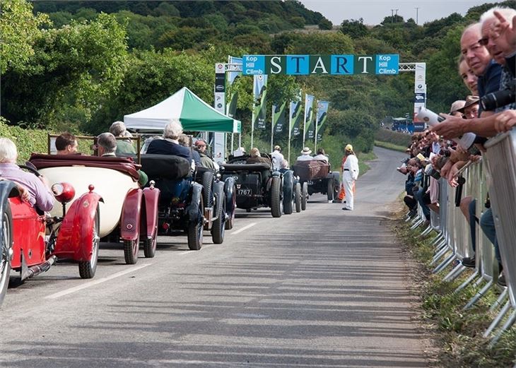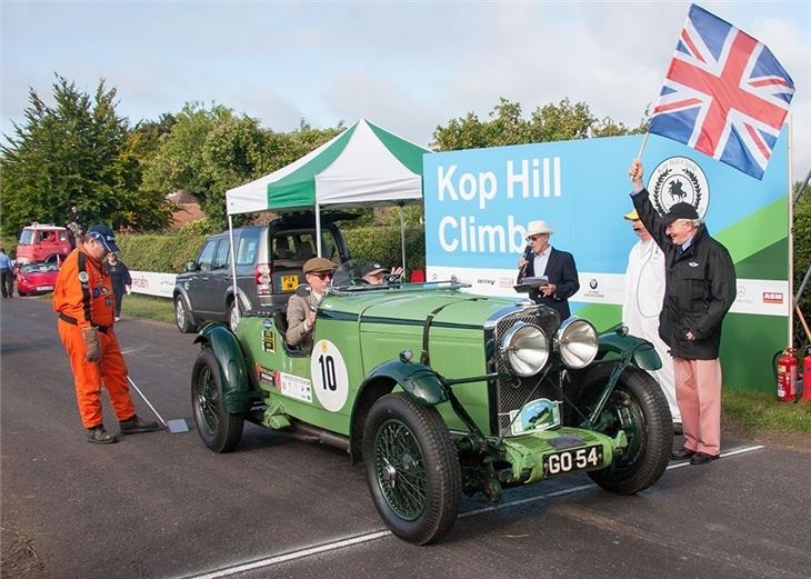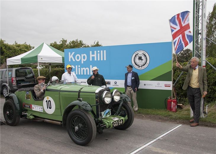 A record 15,000 fans flocked to the Chiltern Hills to watch the Kop Hill Climb to join in the fun and celebrations raising tens of thousands of pounds for local charities. Lord Howe and Paddy Hopkirk, Kop Hill Climb Patron waved off the 1931 ex-Lord Howe racing Talbot GO54 - the first of 400 vehicles to star on the hill climb.
