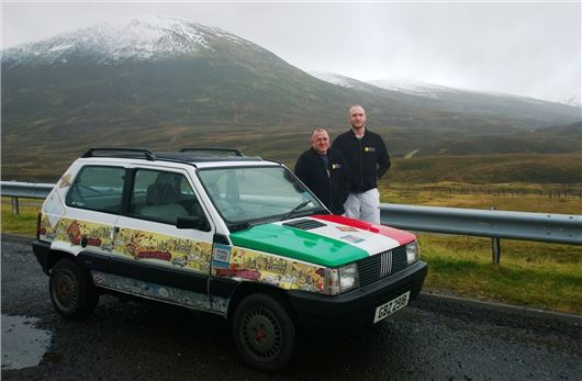 A trio from Northern Ireland finished a cross country road trip at the NEC Classic Motor Show on Friday morning. The team – Jim Magill, Alan Magill and Andrew Smyth, picked up the 1991 Fiat Panda (nicknamed Syliva) from Southampton and took it to Land’s End, before travelling all the way to John O’Groats and back down the NEC Classic, all in aid of Spina Bifida charity Shine.
