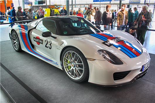These cars were - those models that are hugely interesting, but built within the last decade - in abundence at Stuttagrt. The broad range of what the organisers called the timeless classic models includes the new Porsche 918 Spyder, a 900bhp hybrid that was build just down the road from the exhibition halls - and an example of the limited edition high-powered vehicle hypercar bedecked in the iconic Martini racing colours was shown in the East entrance area.