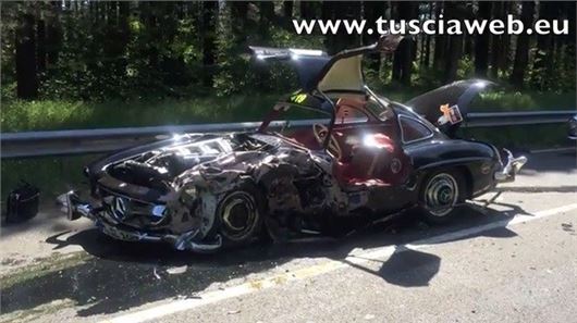 The accident happened on Sunday morning in Tuscia, Italy and involved the black Mercedes-Benz 300SL Gullwing which was participating in the Mille Miglia endurance race, which is now established as one of the greatest competitive driving events for classic cars that were entered in the original race, held between 1927 and '57.