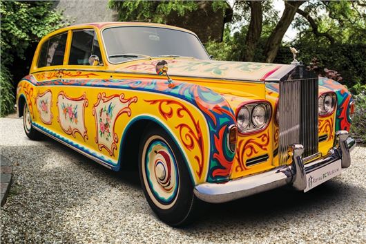 In April, 1967, as The Beatles put the finishing touches to seminal album Sgt Pepper’s Lonely Hearts Club Band, Lennon decided to give the car a new look. While the paintjob is often described as psychedelic, it’s no random kaleidoscope of colours. It is, in fact, a floral Romany scroll design, as used on gypsy caravans and canal barges, with a zodiac symbol on the roof.