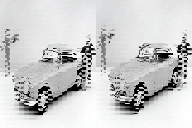 BMW might have been struggling for survival in the 1950s, but the 503 remained one of the most effective upmarket sporting cars money could buy. It topped the BMW range, which could have been more unbalanced – with this range of luxury cars at one end of the spectrum, and the tiny Isetta microcar at the other – and nothing between. The glorious looking 503 was designed by Count Albrecht Goertz – a man who years later was closely involved in the best-selling Datsun 240Z, among many others. It was sold alongside the curvaceous 501 and 502 saloon models, and used the same running gear as the 502 (including the V8 engine). The style of this car was very individual.