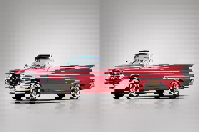 It was enough to add 5bhp but a massive 45lb ft of extra torque at 800rpm lower in the rev range. For drivers who wanted more outright power, an engine tuned to produce 400bhp was fitted with a four-speed Pont-à-Mousson manual transmission from France’s big Facel-Vega models. The body was structurally brand new with a monocoque construction. It was also visually striking with a trapezoidal grille and fabulous sloping tail fins as well as boomerang-like taillights. Seating just four, the bucket seats were divided by a console that ran from front to back. The domed dashboard comprised a glass bubble in which the instruments seemed to float.