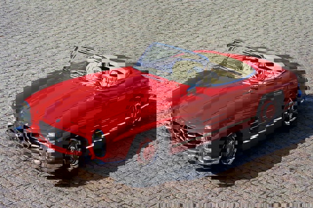 In 1957, Mercedes-Benz replaced the 300SL Gullwing with the Roadster. It was a simplified version of the original, and received a revised spaceframe chassis to make room for conventionally-opening doors. But the trade off for this move towards orthodoxy was a 100kg jump in kerbweight - and a slightly softer, more relaxing suspension set-up to please the Americans who were (primarily) buying this car.
