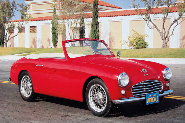 Launched in 1950, the Amica was a two-seater available as either a coupé or a roadster, and was the company’s first serious effort at a standalone car. Suspension was courtesy of Fiat but Siata developed the tubular chassis. At the front was independent suspension with a transverse leaf spring and lower wishbones, while at the back, there was a live axle suspended by quarter-elliptic springs. Power was also provided by Fiat, its 500 engine being available in various states of tune including a 26bhp 750cc version. However sales were sluggish, and when the company branched into the USA with a Crossley engined model, but few buyers were interested.